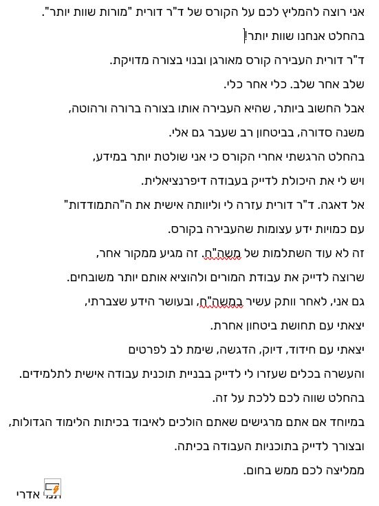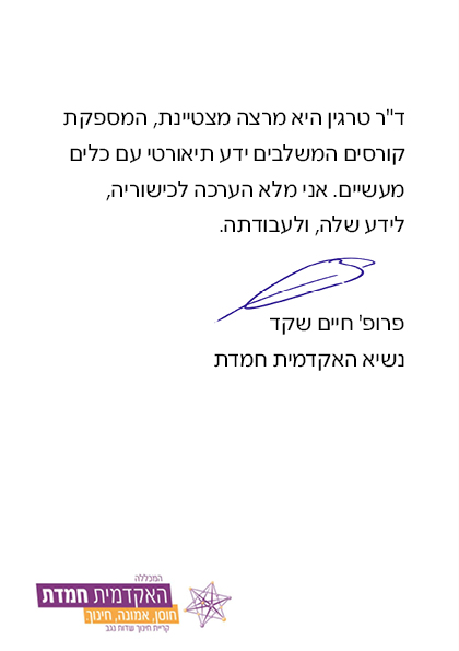 כמרצה להוראה מותאמת בחינוך הרגיל והמיוחד, ובקורסים העוסקים בהפרעות קשב ולקויות למידה לימדתי כבר קרוב ל־5,000 סטודנטים איך להתמודד עם כיתה הטרוגנית, איך להגביר מוטיבציה אצל תלמידים, איך ללמד בצורה שמגיעה לכל תלמיד ואיך לשפר את האווירה בכיתה.